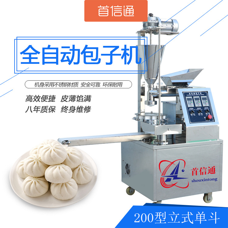 全自動包子機是指把面粉跟水用和面機攪拌均勻成團之后替代傳統手工揉面做包子的加工設備,是一種經濟、適用、高效的面食加工設備,用揉和后的面團能夠增加面的筋度、面的白...
